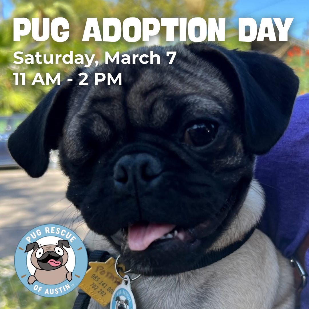 Plus, on Adoption Day, we’re giving an extra boost—20% of all sales will go directly to Pug Rescue of Austin. Together, we can help more pups find the loving homes they deserve.